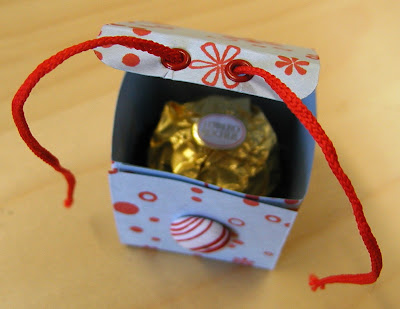Bedanken dürft ihr euch bei meiner kleinen Hexe, denn sie kam mit einem Rocher an und sagte, dass sie es an eine Freundin verschenken will. Aber das macht frau ja nicht einfach so... also habe ich mal schnell eine Box drumherum gebaut. ;-)