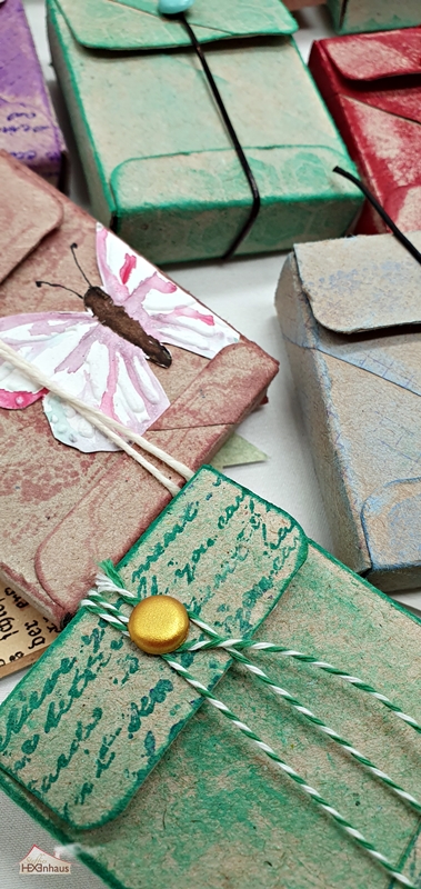 Die meisten meiner Boxen haben jedoch eine Tiefe von 1,5 cm bekommen, weil ich darin etwas eingepackt habe, was dicker als 1 cm ist.